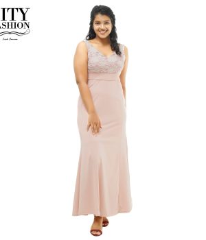 Pink Stretch Offshoulder Fishtail Long Party Dress